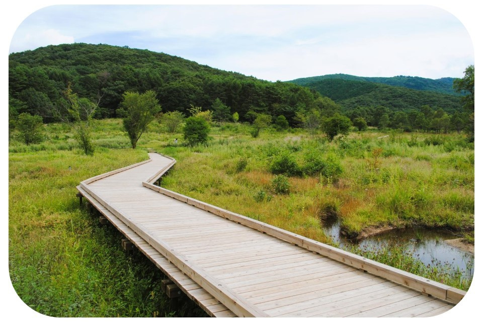 八幡湿原は1,000m級の山々に囲まれた標高800mの高地に位置し、大小さまざまな湿原が点在しており、保護すべき貴重な遺産となっております。