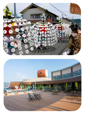 大きな太鼓が目印の「道の駅舞ロードIC千代田」は県道と中国自動車道千代田