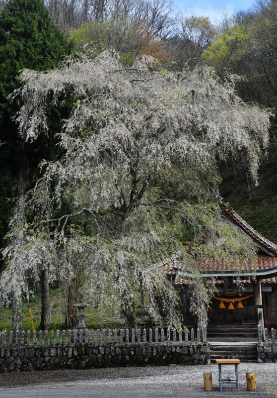 県道11号線沿い、橋山大歳神社の境内に咲く。神社の社殿と合わせて里山のしっとりとした風情が趣深い。