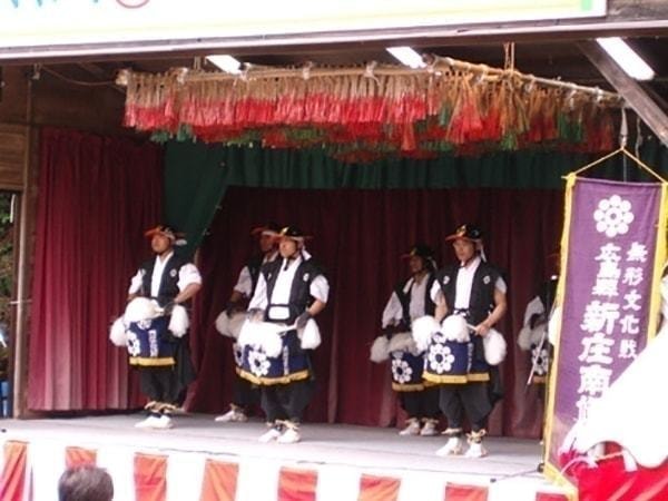 天正年間、吉川元春が南条元続の居城を攻略した際、踊子に扮した壮者を城内に送り 込み功を奏したのに始まるとも伝わる。 別に南条踊とも呼ばれ、(新庄の南条踊りとは別)女装した男性が約1.5mの竹籤に和紙の花を飾った花笠を 付け、歌頭を先頭に太鼓・鉦・笛にあわせて踊られる。 特徴ある花笠とゆったりとした舞風は、この地方の特徴として評価されている。昭和36年4月 広島県の無形民俗文化財指定。昭和47年8月 文化庁の記録作成等の措置を講ずべき無形の民俗文化財に選定。